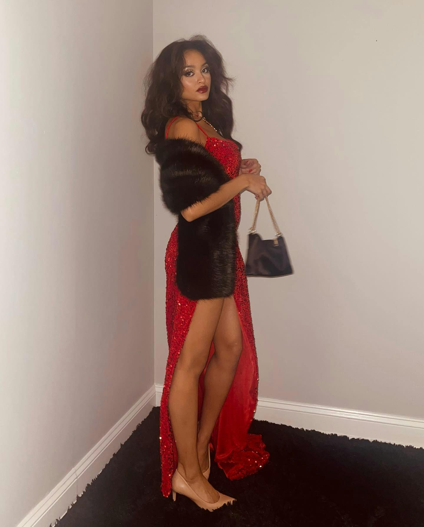 Impress in this glamorous long red mermaid prom dress. The intricate sequined detailing and elegant slit adds a touch of glamour to your look. With its stylish straps and mermaid silhouette, this dress will make you stand out at any prom or formal event.