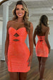 Featured: Step into the spotlight with this neon orange sweetheart dress that’s bursting with energy and charm. The fitted tight bodice features dazzling beaded rhinestones and bold cut outs that add a flirty edge, while the sparkle skirt brings fun, flouncy movement to every step. Finished with a lace-up back for a custom fit, this mini dress is perfect for homecoming, parties, or any night made for twirling, shining, and turning heads.