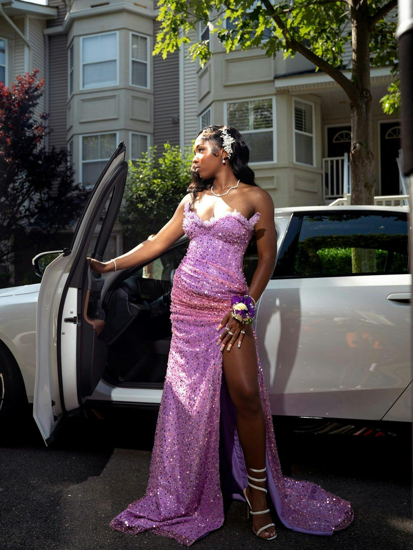 Faites sensation et brillez de mille feux dans cette robe de bal sirène à couper le souffle. Avec son corsage à sequins scintillants, son décolleté romantique en cœur et ses détails à volants espiègles, cette robe est conçue pour vous faire sentir comme une star.