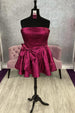 Feature: Turn heads in this stunning metallic short prom dress. Made from soft fabric, it features a line bodice with details, a strapless design, ruching, and a built-in bra for a flawless fit. The daring bowknot split add modern elegance, making it perfect for prom or special events. Get ready to shine and receive endless compliments!