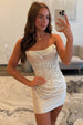 Featured: Turn heads in this champagne strapless mini dress that exudes timeless elegance with a modern twist. The corset style bodice features intricate lace adorned with subtle sparkle, offering a flattering, sculpted silhouette. Draped satin accents frame the neckline and waist, adding softness and dimension, while the fitted skirt highlights your figure with sleek sophistication. A perfect balance of romantic detail and sultry appeal, this dress ensures you stand out effortlessly.