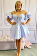 Featured: Turn every head in this dreamy lilac mini dress that radiates fairytale charm. The strapless design with voluminous detachable puff sleeves adds a whimsical touch, while the structured corset bodice with a deep V illusion neckline creates a flattering and enchanting silhouette. The sparkly satin fabric catches the light with every move, and the flared A line skirt adds playful twirl-worthy volume. Whether you’re dancing the night away or making an entrance, this magical dress is made to shine.