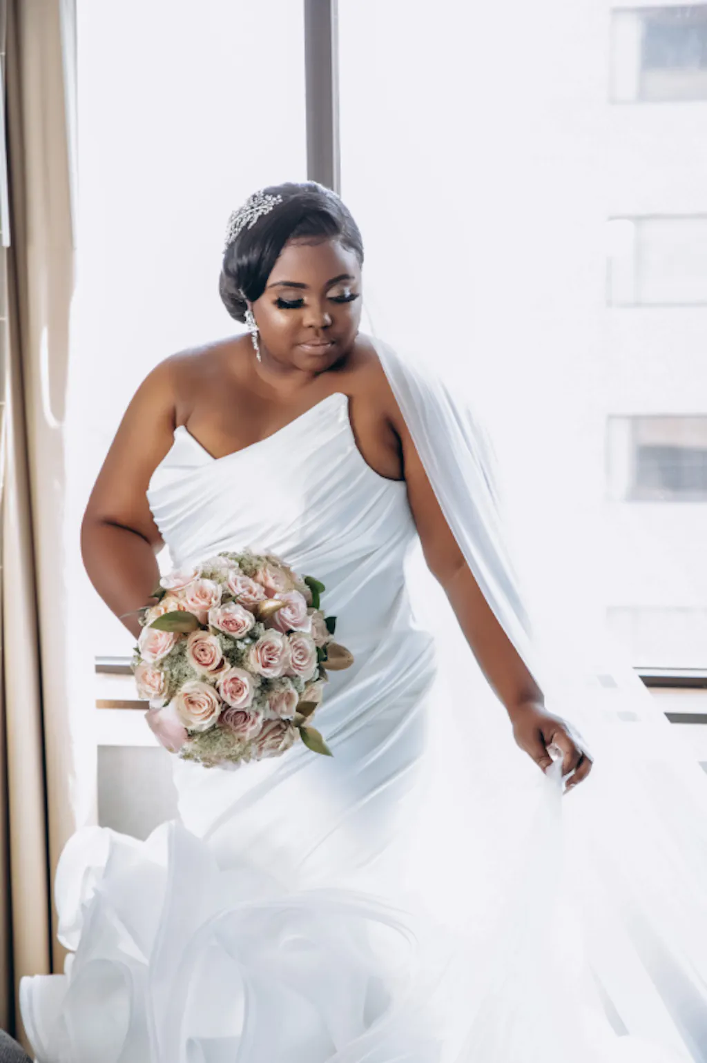 Rendez votre mariage inoubliable grâce à cette magnifique robe sirène qui allie une élégance intemporelle à des détails architecturaux modernes pour un look de mariée à couper le souffle.