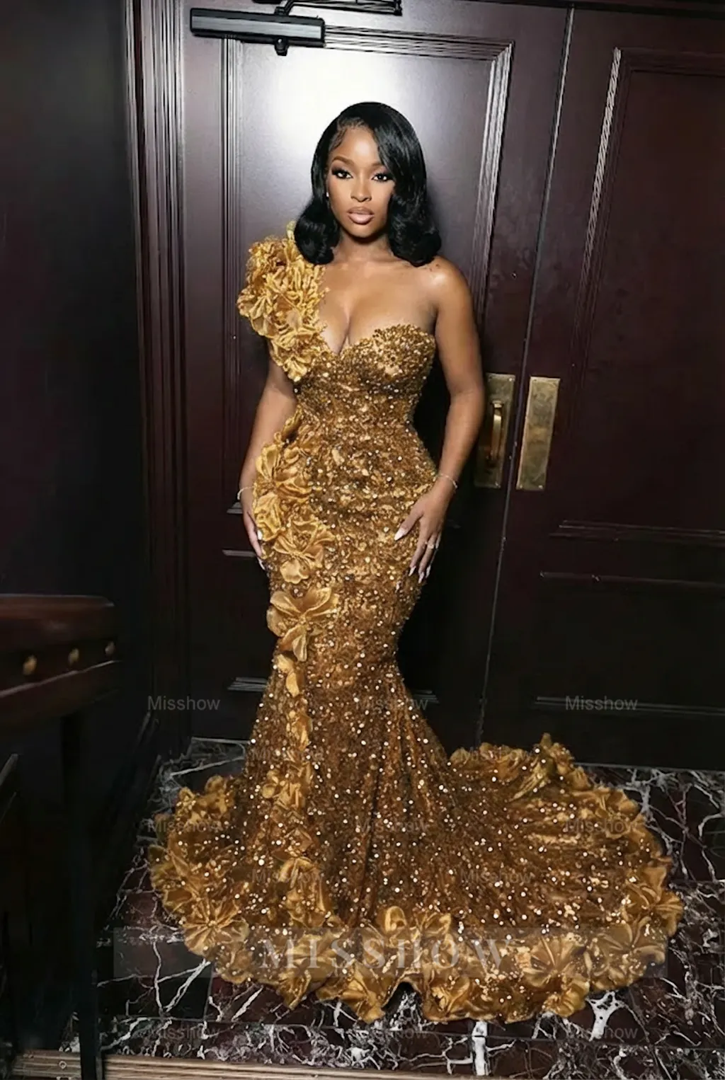 Elevate your evening with this striking burgundy mermaid gown, designed for those who command attention. The asymmetrical one-shoulder silhouette creates an elegant, modern line, while intricate beading and appliqués add dimensional luxury across the bodice and skirt. The sleek sleeveless cut showcases refined shoulders, and the mermaid hem provides dramatic movement with sophisticated structure. Perfect for galas, formal weddings, or red-carpet moments, this dress combines contemporary design with timeless glamour. Available for customization to ensure your ideal fit and vision.