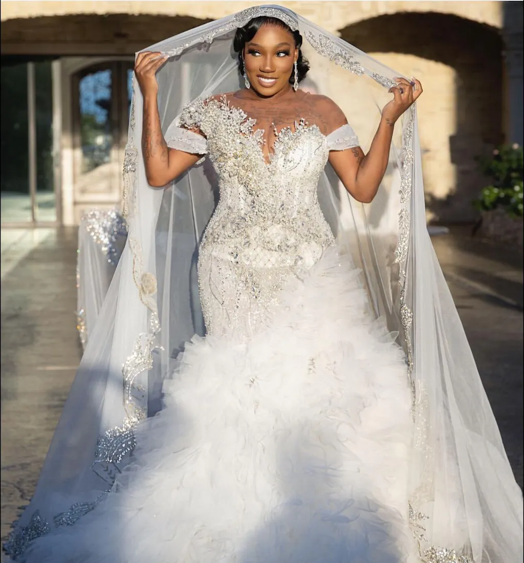 Product Description Elevate your bridal vision with this stunning mermaid wedding dress, meticulously crafted to command attention. The gown features an opulent beaded bodice that catches light with every movement, paired with a gracefully ruffled skirt that adds dimension and romance. A strategic slit provides modern elegance and ease of movement, while the floor-length silhouette creates a dramatic, unforgettable entrance. Constructed with premium fabrics and intricate detailing, this dress embodies luxury craftsmanship designed for the discerning bride who refuses to compromise on quality or style.