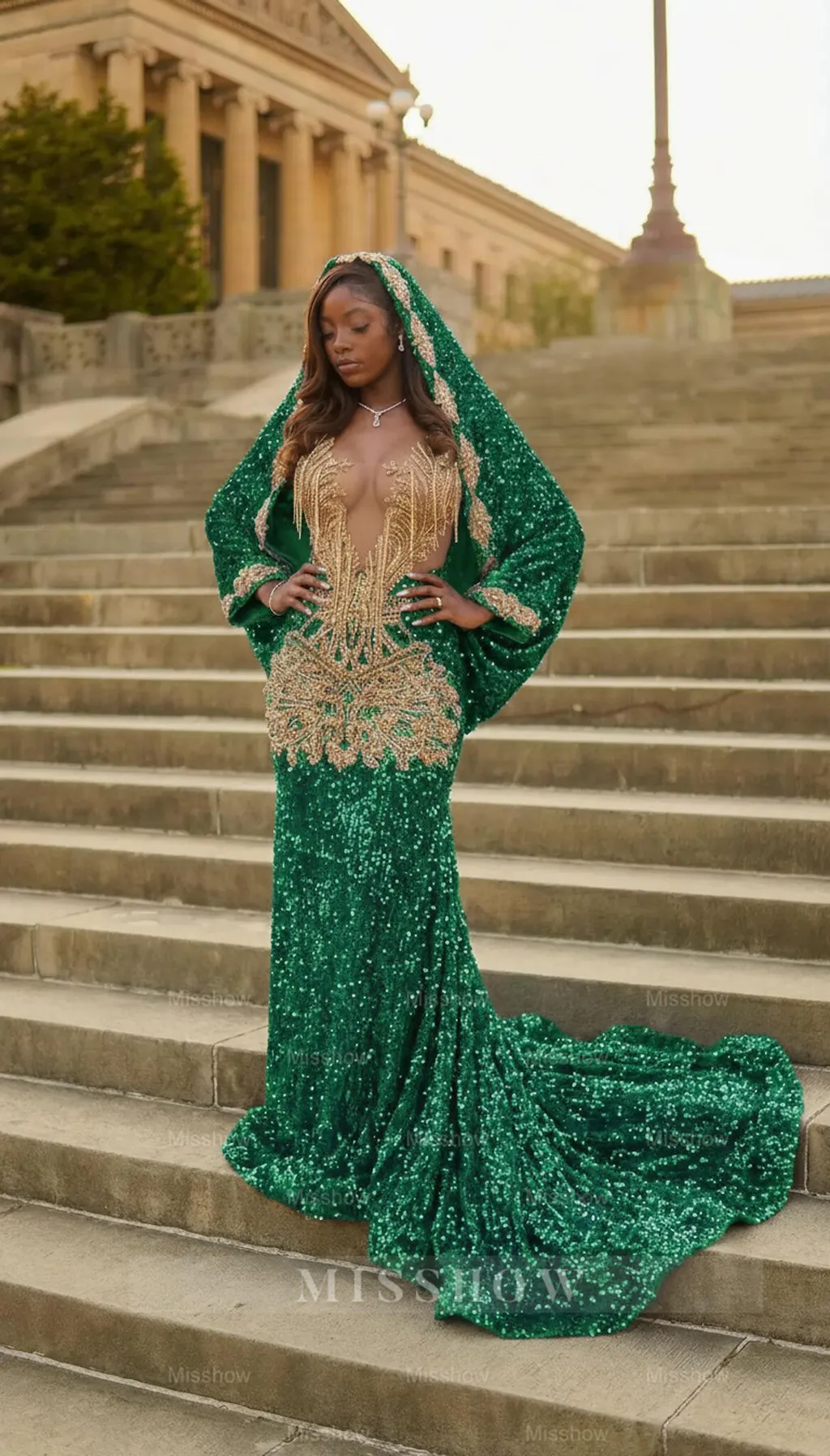 Dive into elegance with this stunning blue sequined mermaid prom dress, designed to make you the center of attention. The sleeveless silhouette showcases intricate lace detailing that flows seamlessly into a dramatic mermaid skirt, while thousands of shimmering sequins catch the light with every movement. The included veil adds a touch of ethereal sophistication, perfect for creating unforgettable photos and moments. Crafted for those who demand both glamour and impeccable fit, this gown features premium construction and customizable tailoring to ensure you feel confident and radiant all night long.