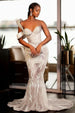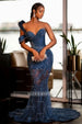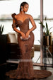 Make an unforgettable entrance in this show-stopping mermaid prom dress. Adorned with dazzling glitter sequins, lustrous pearls, and romantic ruffles, this gown is designed to turn heads and create magical memories.
