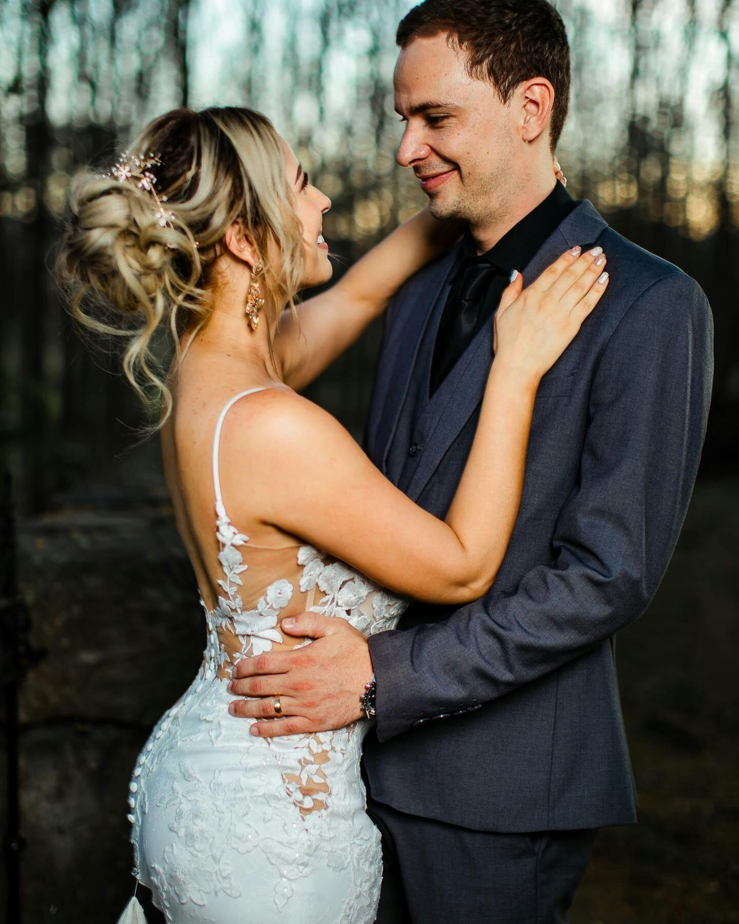 The fabric of this dress feels so luxurious. It has just the right amount of shimmer, and the corset back is a game-changer for getting the perfect fit. Perfect for a wedding or special event!