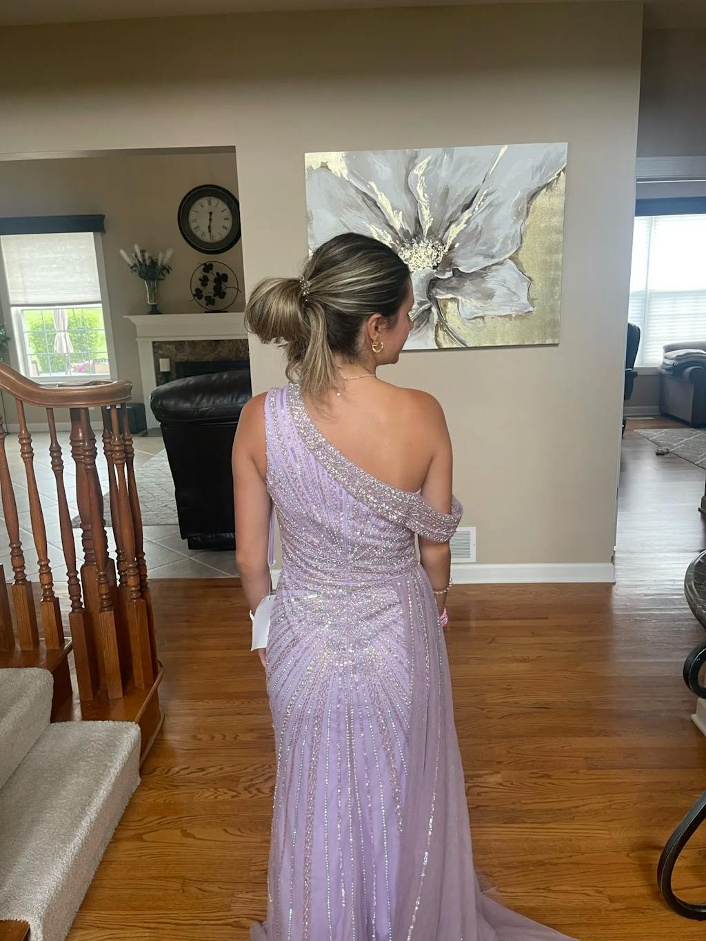 Elegant One Shoulder Sequined Sleeveless Split Front A-line Prom Dress