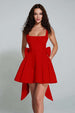 Featured: Steal the spotlight in this black A-line dress that’s equal parts sweet and glamorous. The wide straps and flattering square neckline highlight the collarbone and bust, while the fitted bodice sculpts the waist for a feminine silhouette. A voluminous flared skirt creates a twirl-worthy finish, and the oversized bow detail at the back adds a touch of whimsical charm. The smooth satin fabric lends a luxurious sheen with every movement, making it the perfect blend of cute and chic.