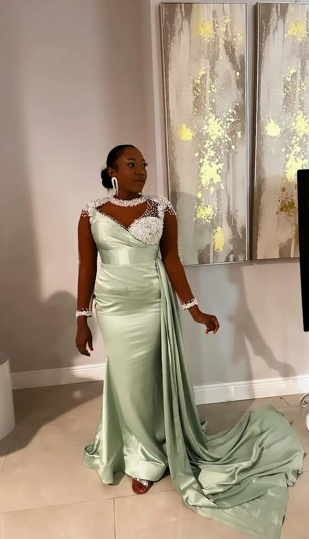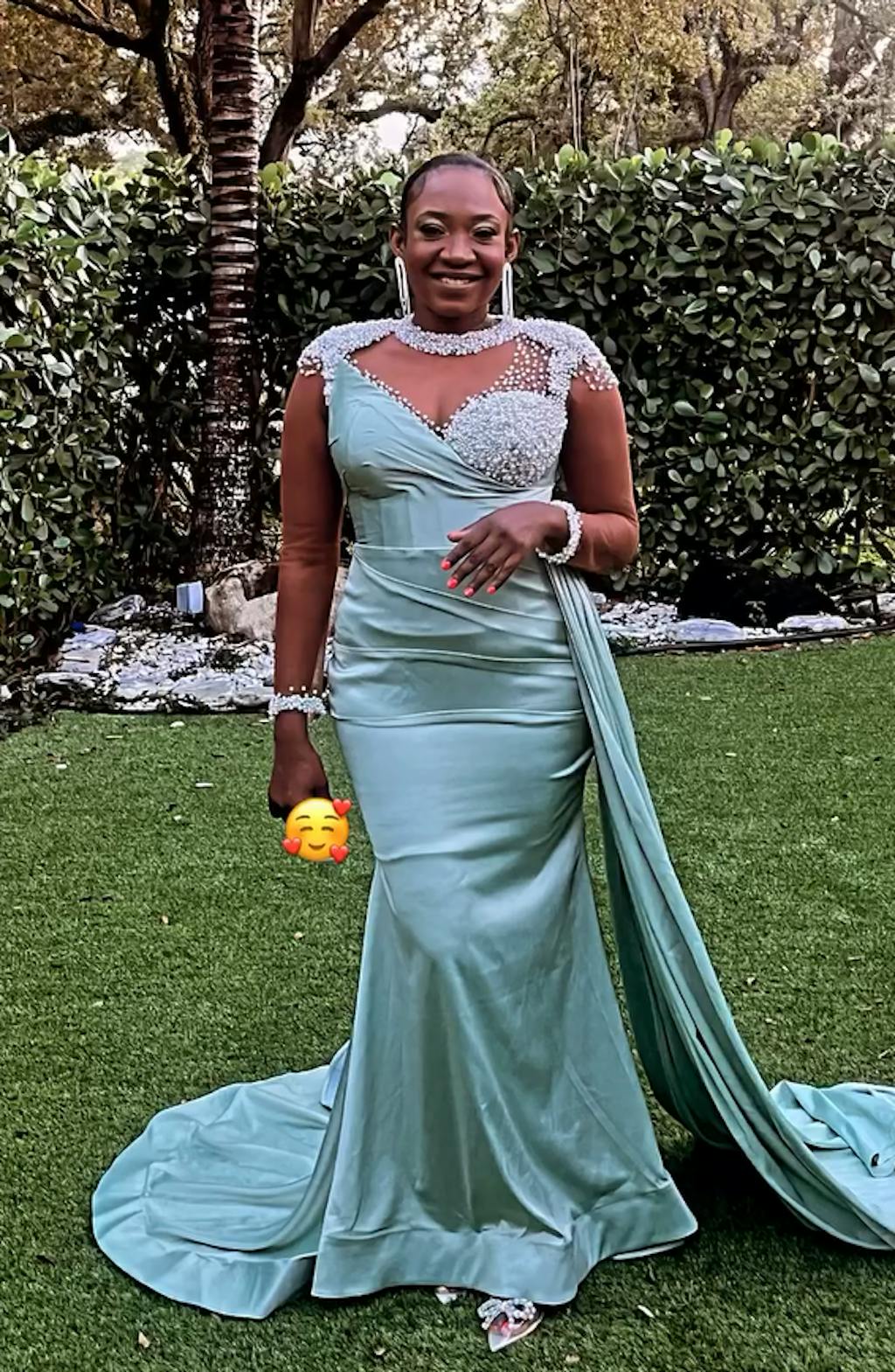 Elegant and sparkling, this Emerald Green Sweetheart Sparkle Beaded Evening Dress with Train is a showstopper. The sweetheart neckline and beaded details add a touch of glamour, while the train adds a dramatic touch. Perfect for any special occasion, this dress is sure to make you stand out and feel your best.
