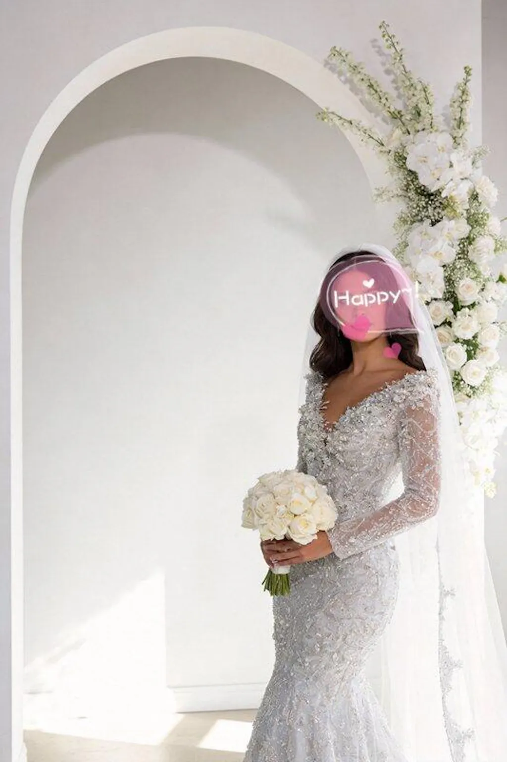 This luxury long mermaid wedding dress features a romantic sweetheart neckline, shimmering sequins, and elegant sleeves. Designed to hug your curves, it creates a glamorous silhouette, perfect for brides seeking timeless elegance with a touch of sparkle on their big day.