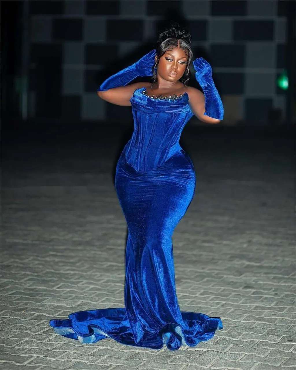 This beautiful and stylish Royal Blue Long Velvet Beading Sleeveless Mermaid Prom Dress is an ideal choice for any special event. It features lavish velvet fabric with sparkling beadwork, detailed to perfection with a sleek mermaid silhouette. The sleeveless design and floor-length hem make it a timeless, elegant choice.