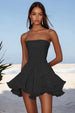 Featured: Step into the spotlight with this light blue mini dress that’s dreamy, elegant, and unforgettable. Crafted from flowy chiffon, the A-line silhouette floats gracefully with soft tiered layers and delicate ruffles for a romantic look. A ruched bodice enhances your shape, while the strapless neckline adds a touch of modern sophistication. Light, airy, and effortlessly chic, this chiffon dress moves with you—perfect for nights when you’re ready to enchant.